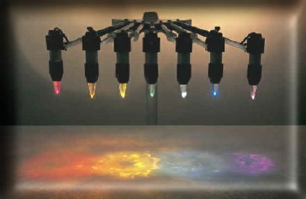 centers or chakras. Colored lights, chosen to match the frequency of chakra colors, radiate light and